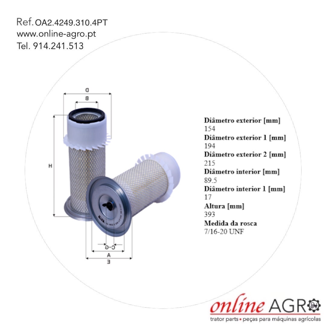 FILTRO DE AR EXTERIOR, #OA2.4249.310.4PT